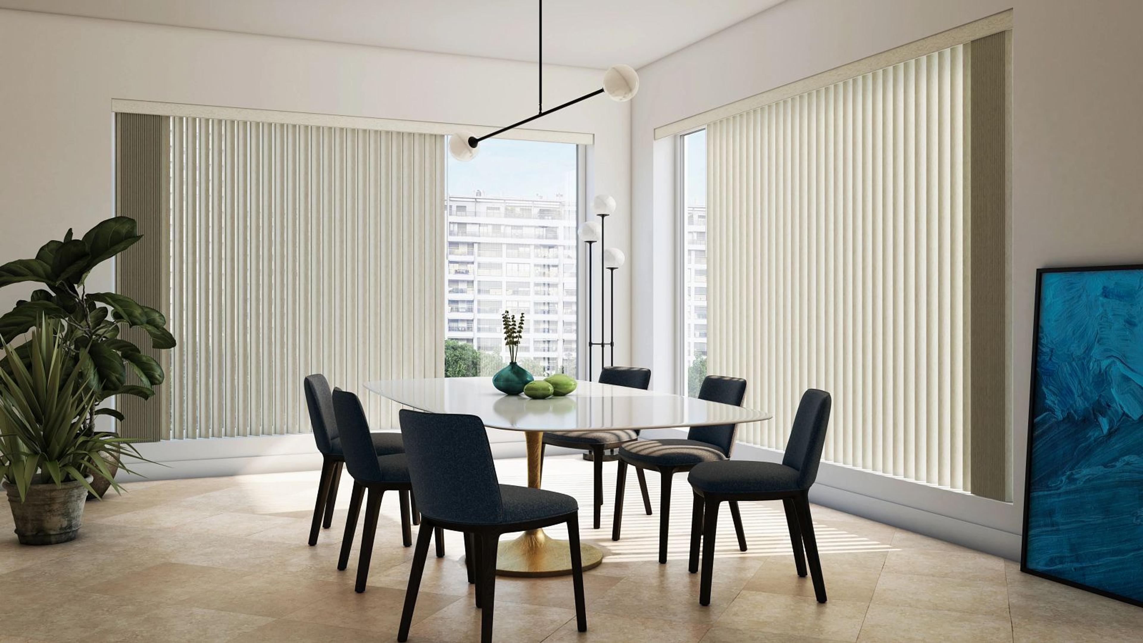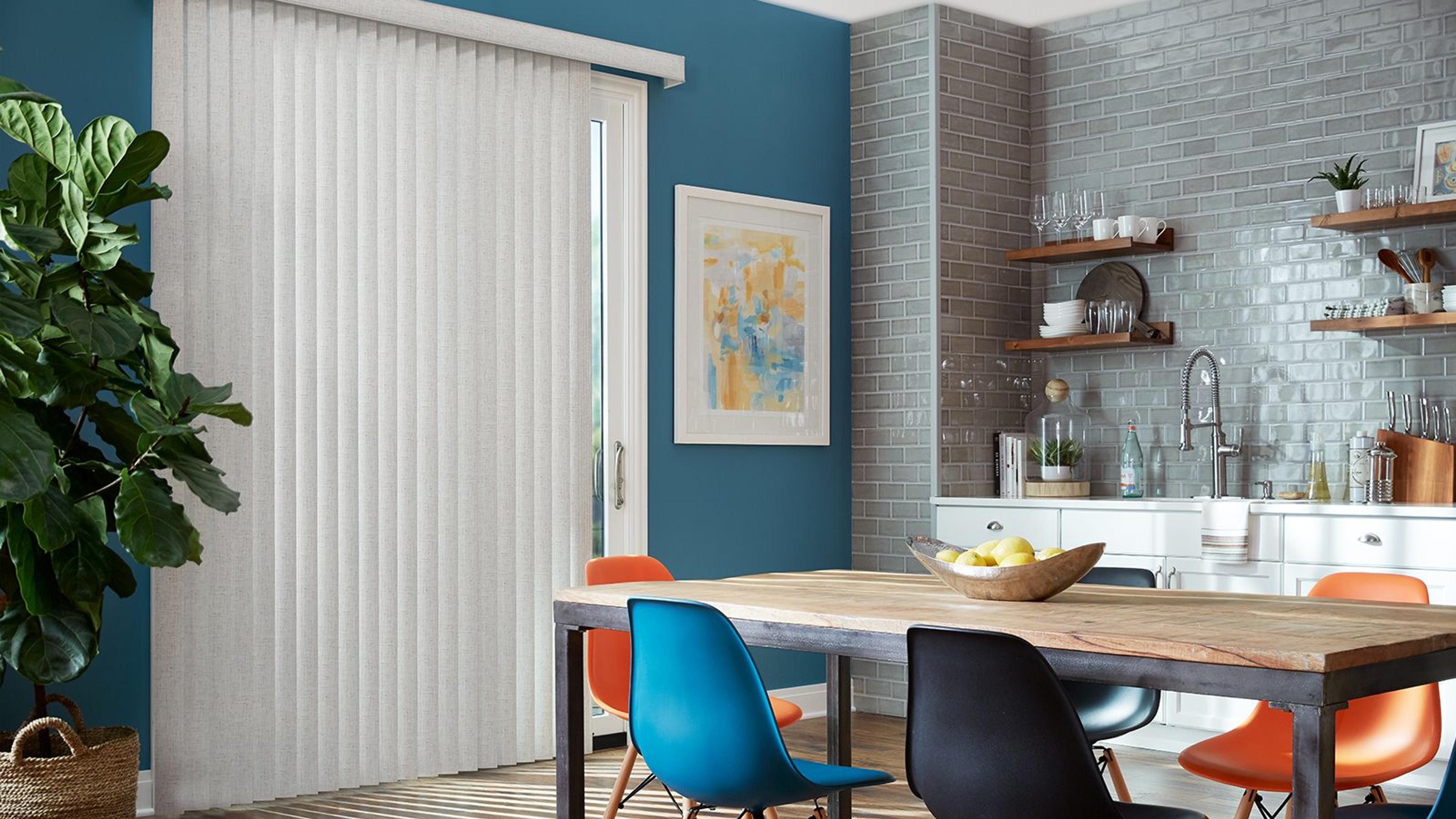 Vertical blinds offer streamlined light control, add height to rooms, and offer easy access on sliding doors and wide windows. Choose from easy-care vinyl, fabric styles, and S-Curve vanes that mimic the gentle folds of draperies. Our vertical blinds are engineered for performance and crafted for beauty.