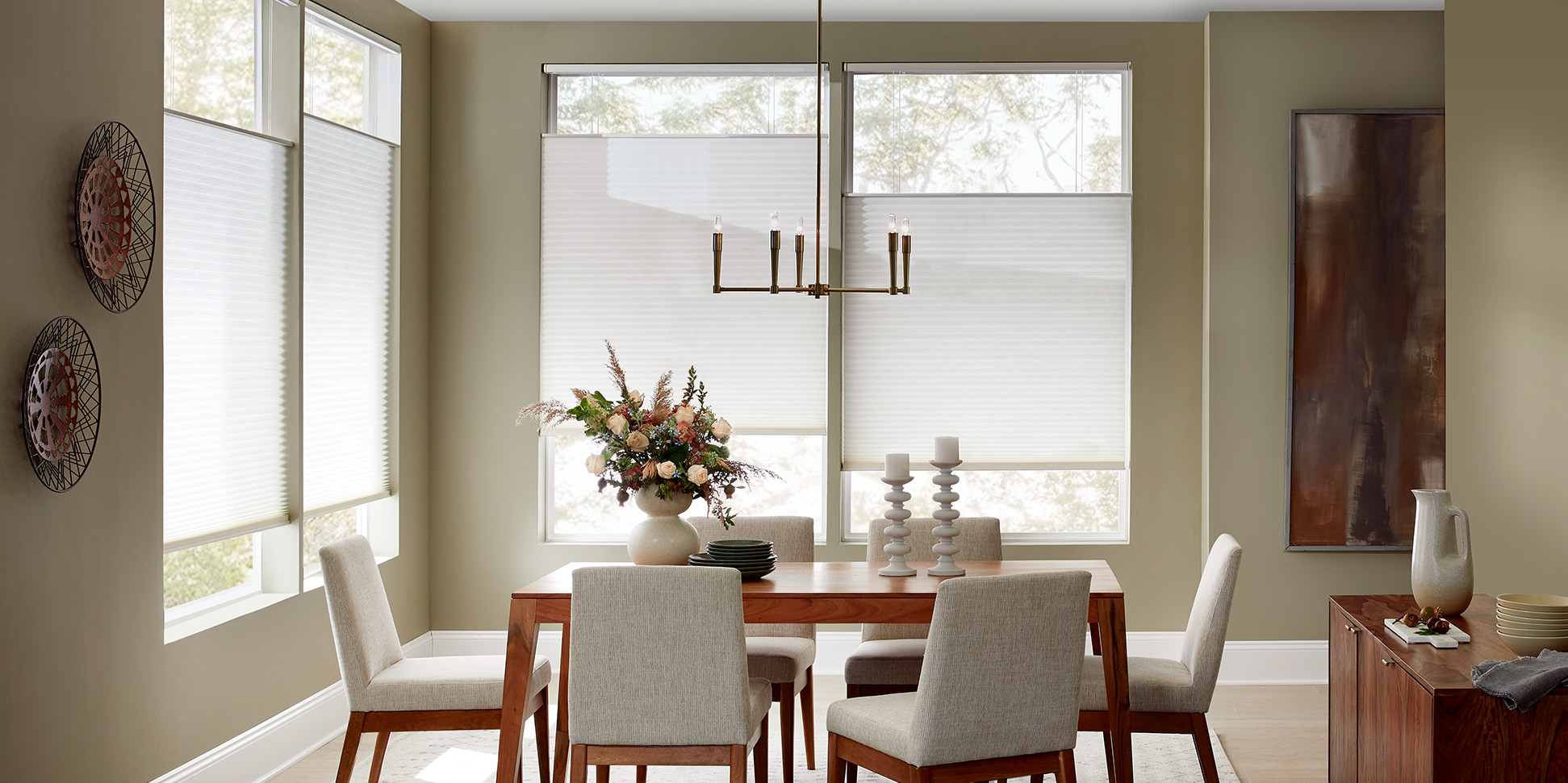 The unique cell-within-a-cell design of Honeycomb and Cellular Shades traps air in distinct pockets, keeping your house warmer when temperatures drop and cooler when they rise.